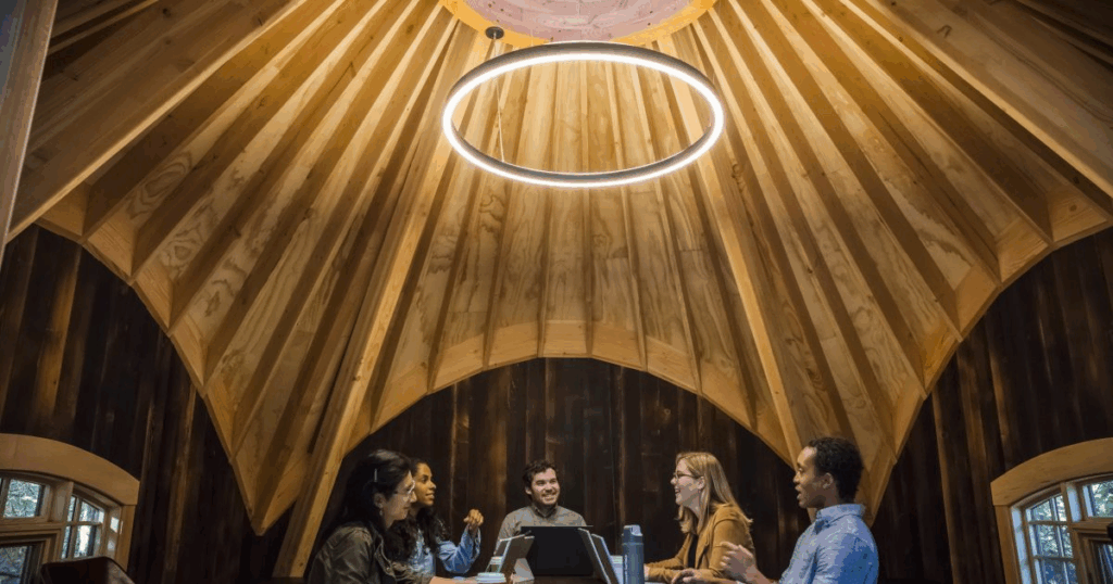 Microsoft certainly has one of the most amazing biophilic campuses in the world. In Redmond, in addition to the headquarters of the technology giant, unique conference rooms were launched in tree houses in 2017. Pete Nelson from Treehouse Masters is responsible for their design and execution.