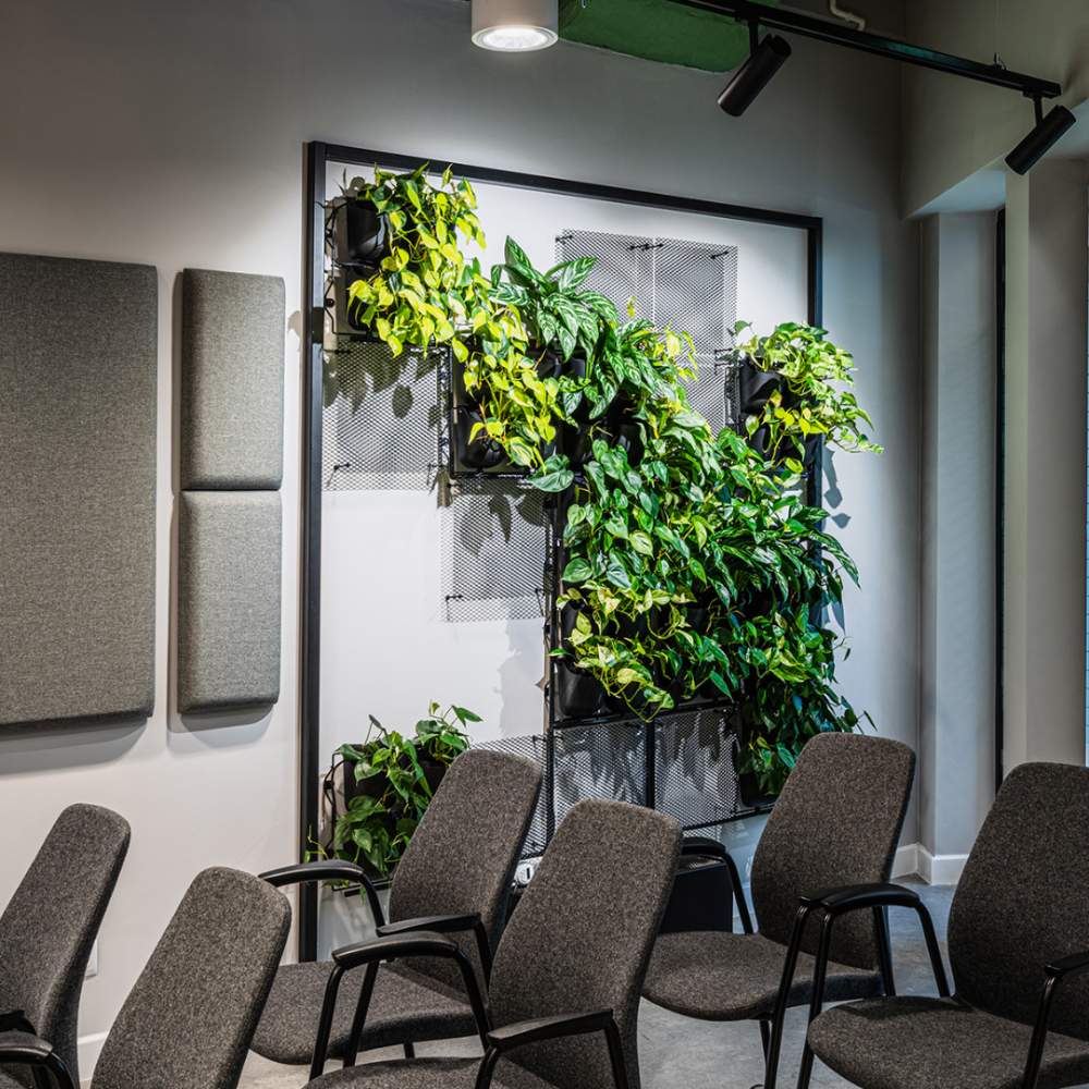 Dzięki nieregularnej konfiguracji 4Nature Vitis możemy wprowadzić dużą ilość żywej zieleni przy jednoczesnym zachowaniu lżejszej kompozycji, niż w przypadku standardowych ogrodów pionowych. Posiadamy moduły w wersji z certyfikatem trudnopalności.